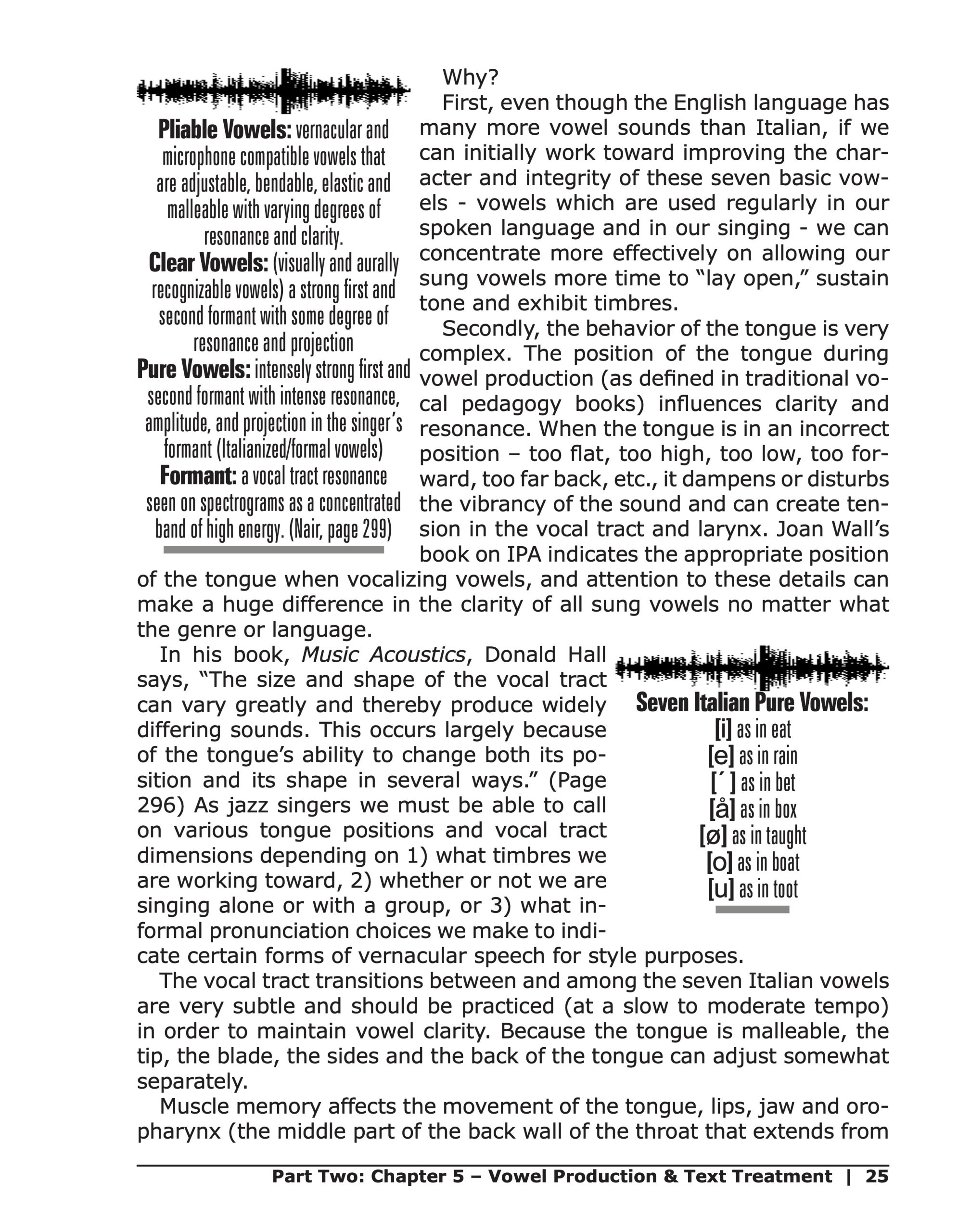 - Learn how to practice and execute appropriate vowels, diphthongs and text treatment so as to sound more authentic.