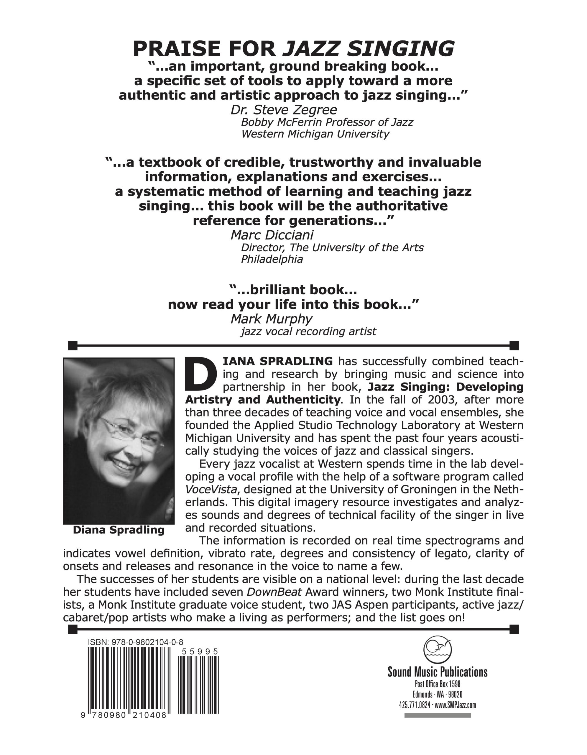 The book vocal jazz artists have been waiting for! Finally, here is a substantial definition of what vocal jazz artists actually do physically and vocally. The findings are based on over three decades of teaching and almost four years of acoustic research including a study of 20 jazz artists from the first generation of modern jazz singers.