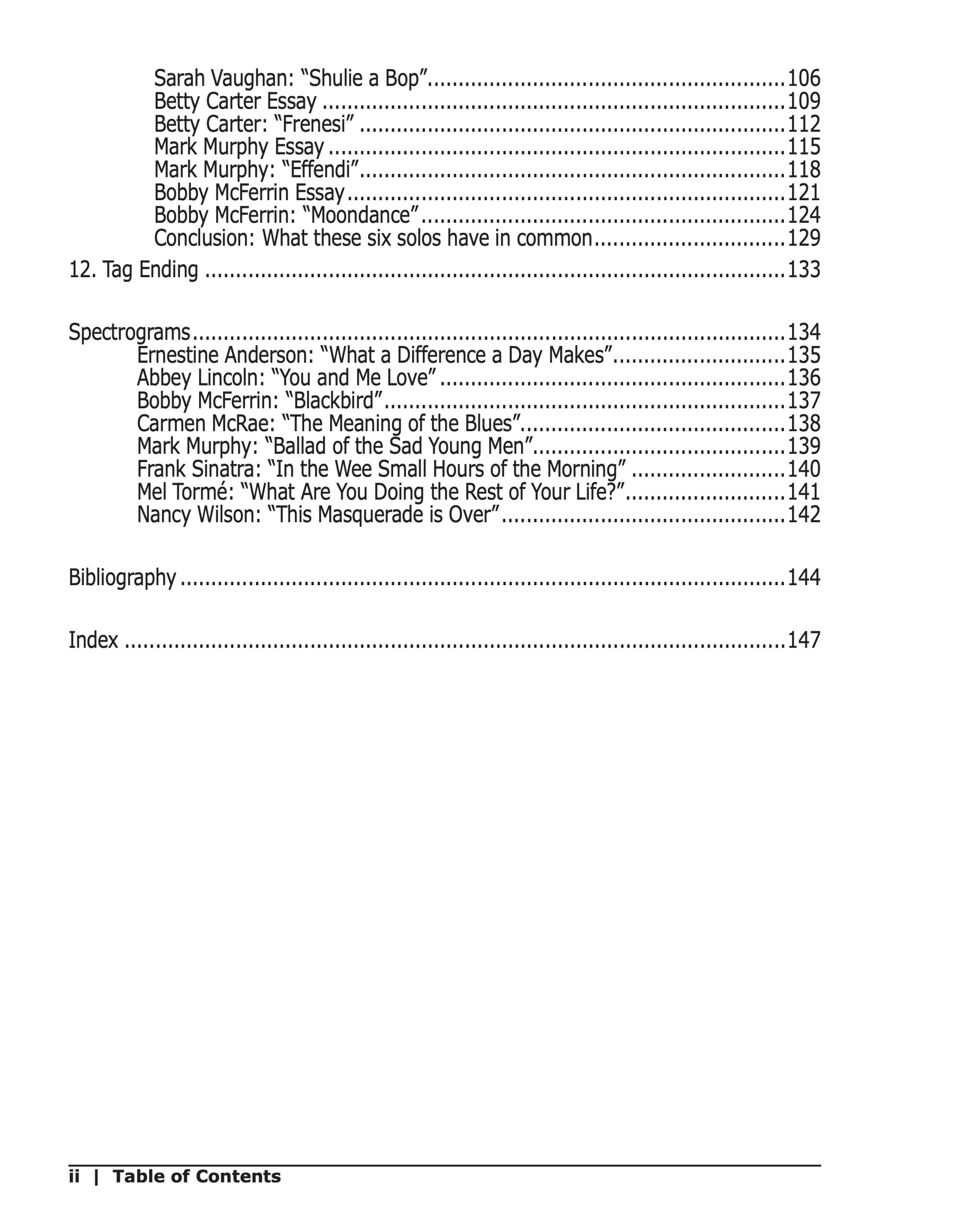 - Study 10 common elements of 6 complete transcriptions of scat/improvised solos that can improve your artistry and authenticity as a jazz vocalist.